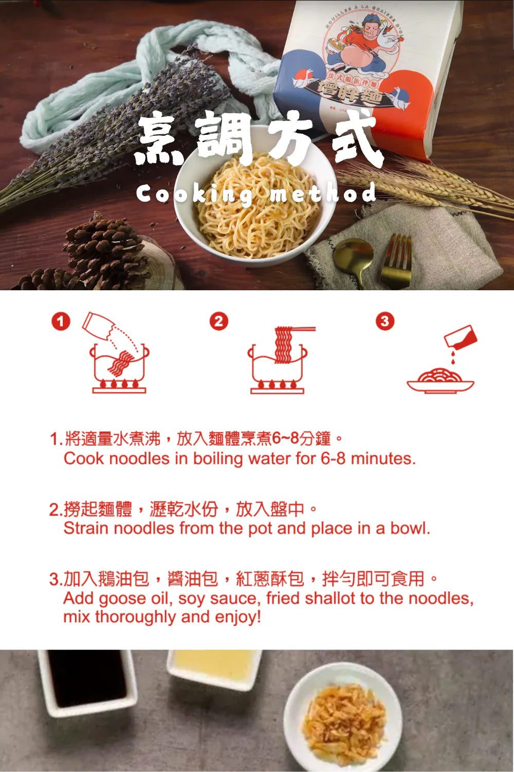 • Includes noodles, Goose oil, Soy sauce & Fried Shallots